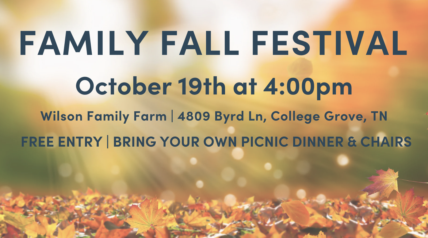 Join us at on Sunday, October 19th, from 4:00pm-7:00pm for our annual Family Fall Festival at the Wilson Family Farm in College Grove. Bring your own picnic dinner and chairs. […]